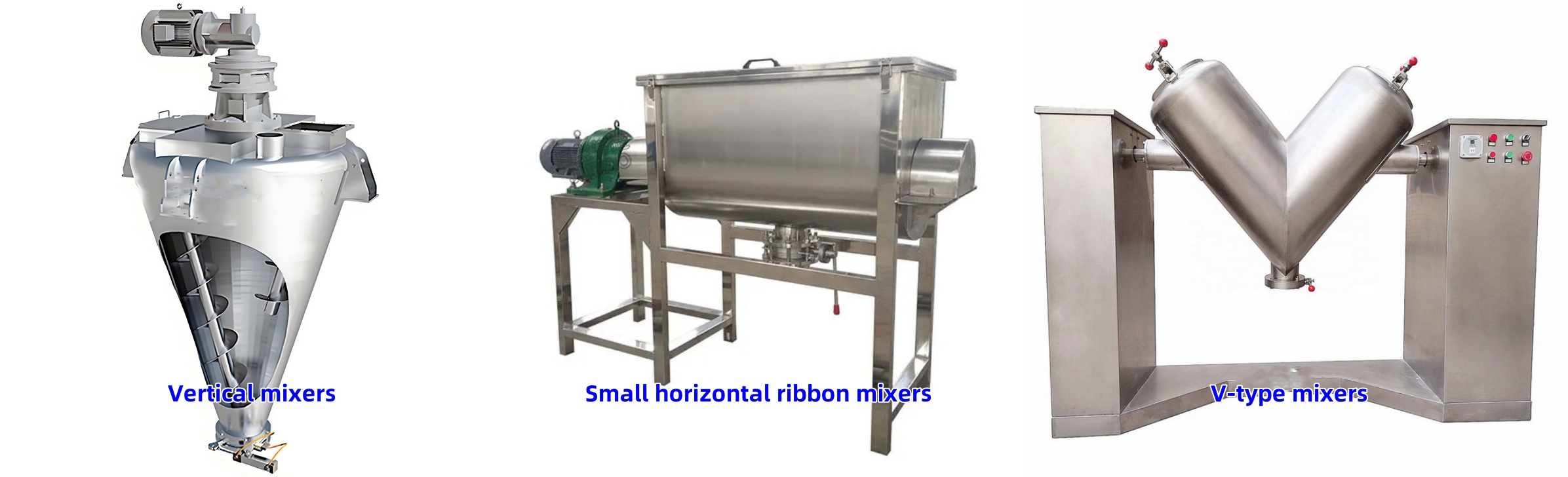 Small feed additive mixers are categorized into three types based on their structural differences: small horizontal, vertical, and V-type. Each type's unique design adapts to different small-batch mixing needs.