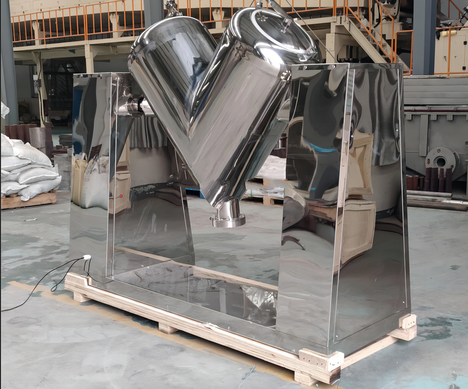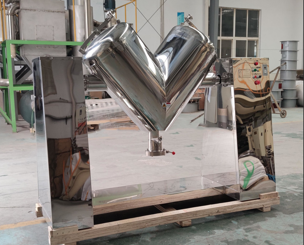 V-type mixers: Composed of an asymmetric double-conical barrel, the barrel's rotation causes the material to flip and shift, achieving mixing through diffusion. The mixing process is gentle and shear-free, protecting fragile additives. Capacities range from 5L to 200L.