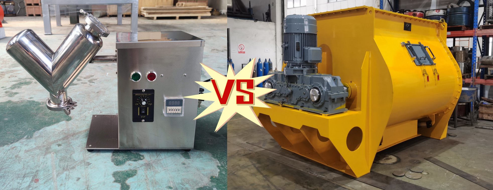 Mixing cylinder: It is welded into a V shape by two asymmetric cylinders to promote three-dimensional tumbling of materials.