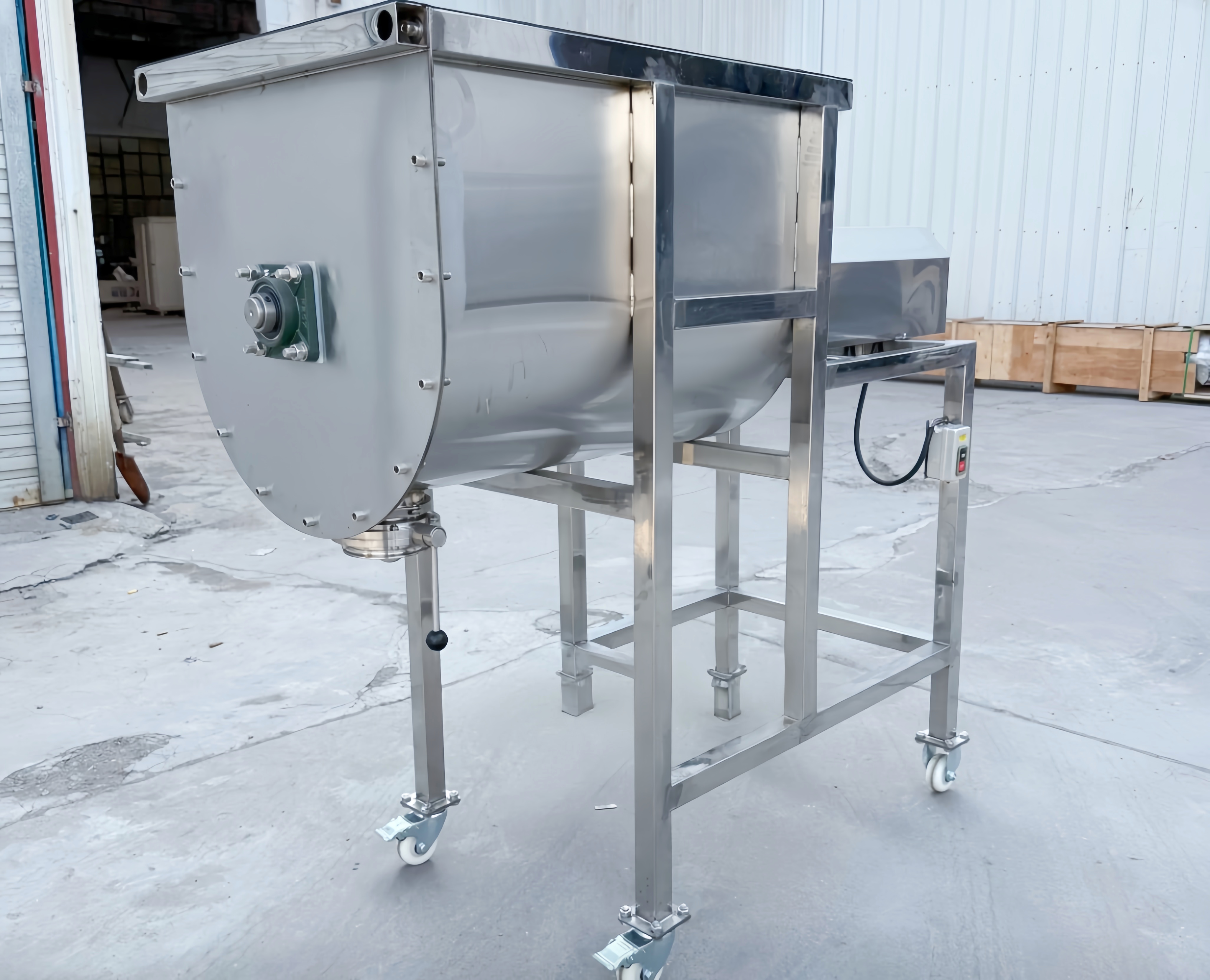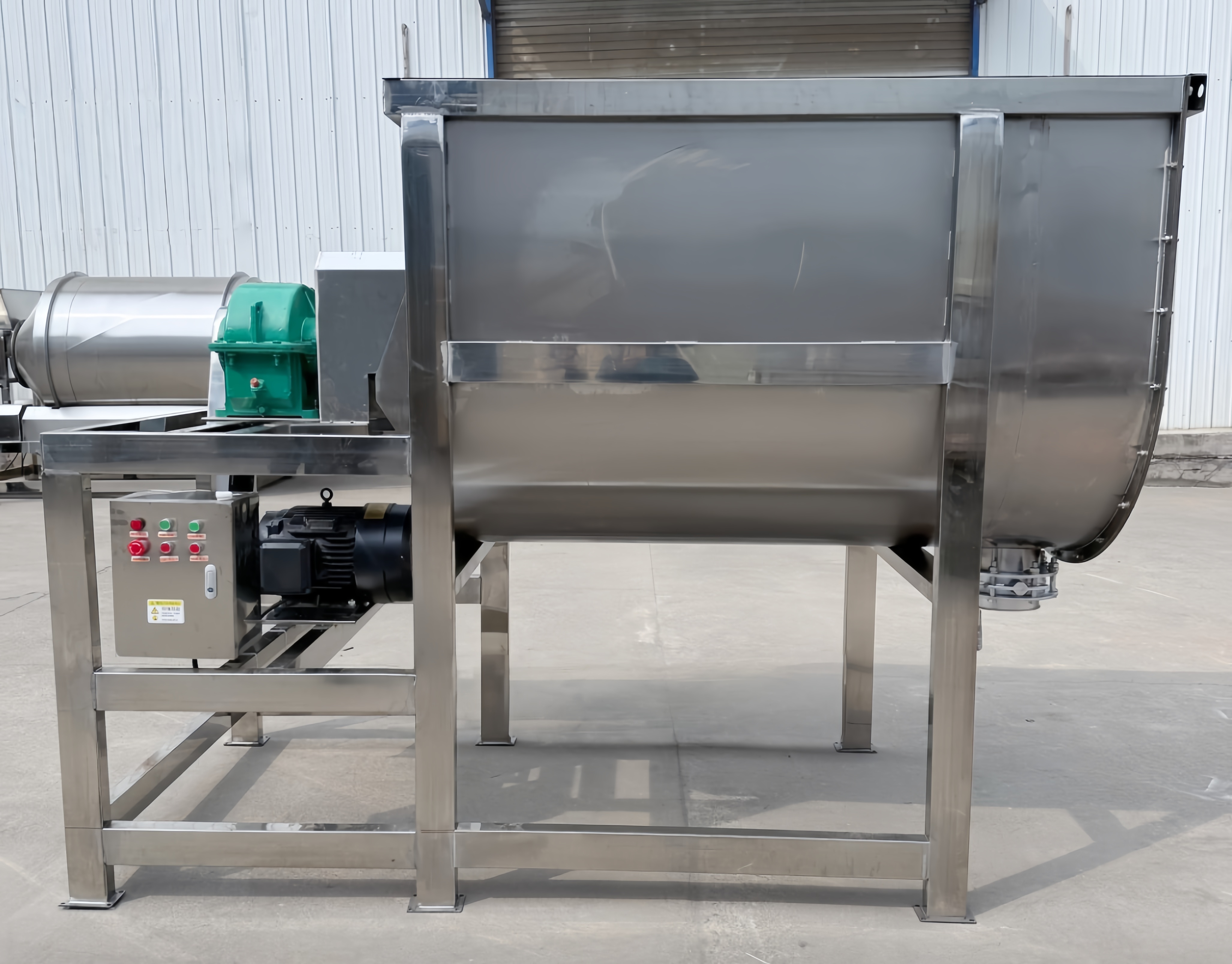 Regarding material selection, the Bread Crumb Ribbon Mixer Manufacturer adheres to food production hygiene standards, prioritizing the use of 304 and 316 food-grade stainless steel for the equipment body. Surfaces in contact with food are finely polished, meeting food machinery safety standards to prevent material contamination, while also possessing wear-resistant and corrosion-resistant properties, extending the equipment's service life. Furthermore, manufacturers optimize equipment details based on the actual production scenarios of breadcrumbs: for example, designing a fully openable cylinder lid for easy cleaning and product change; using an arc-shaped valve flush with the inner wall of the cylinder to prevent material accumulation; and adding jackets as needed to cool or heat materials, adapting to different process requirements and making the equipment more suitable for the company's actual production needs.