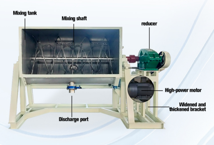 Feeding Machine: When used with automated feeding equipment such as screw conveyors and vacuum conveyors, it achieves automatic conveying and quantitative feeding of raw materials, reducing manual handling and dust. The feeding machine seamlessly connects with the mixer, enabling continuous production.