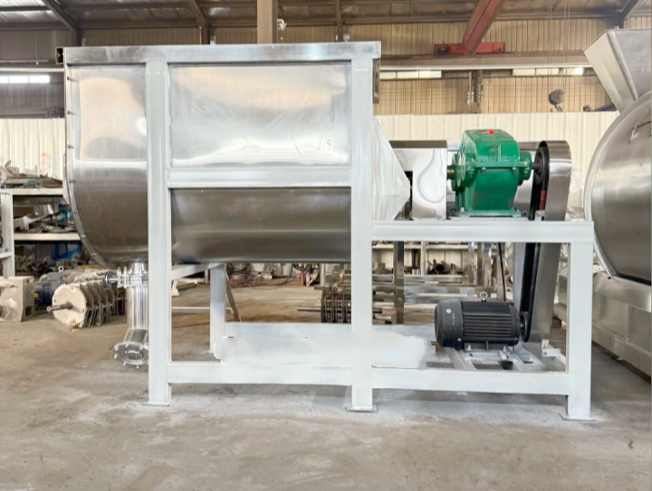 The Compound Seasoning Stainless Steel Ribbon Mixer is a key product for mixing in the food seasoning industry. Made of food-grade stainless steel, it mixes evenly and operates stably. It can be paired with a vibrating screen, a feeder, and a packaging machine to form an automated production line.
