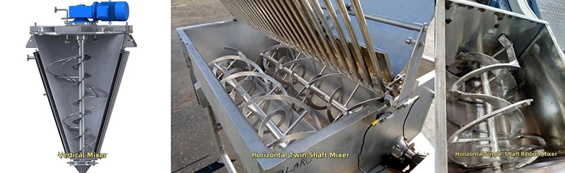 Based on our customers' production needs and environments, we offer different types and materials of Food Additive for Powder Ribbon Mixer to meet mixing requirements for various materials, such as seasoning powder, vitamin powder, and non-dairy creamer.