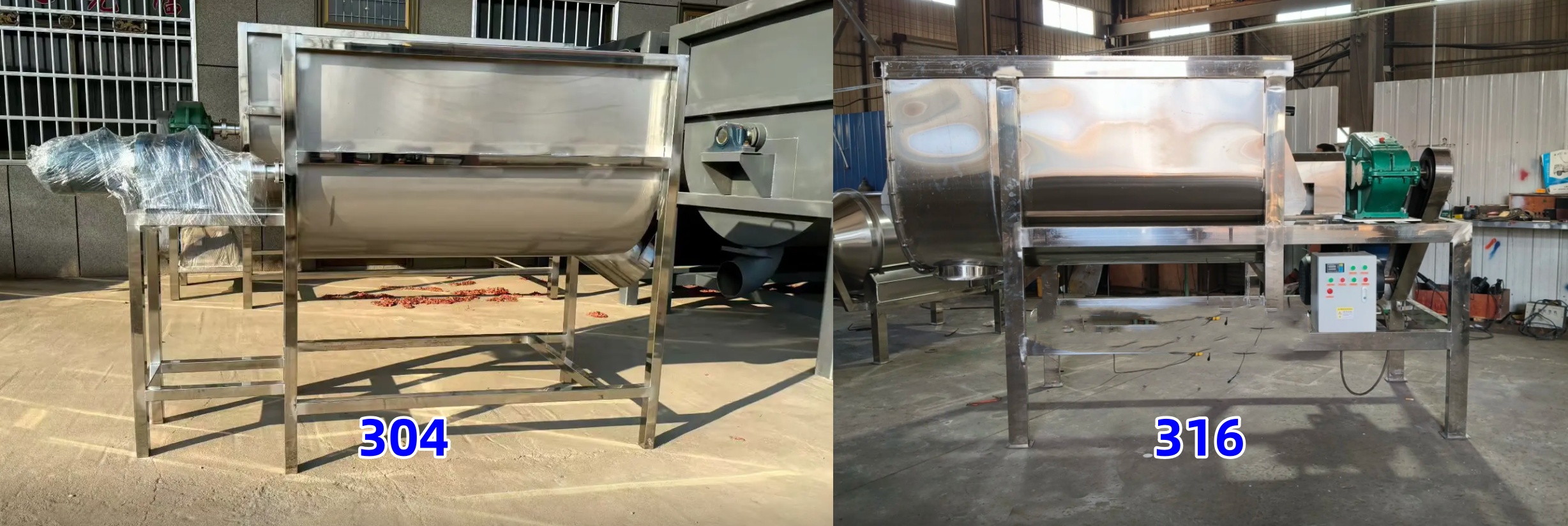 304 Food Grade Stainless Steel Paddle Mixer: Utilizing a classic formula of 18% chromium and 8% nickel, it boasts excellent corrosion resistance, oxidation resistance, and mirror-polishing properties. With moderate cost and easy cleaning, it is widely applicable to general food processing scenarios, such as mixing dry powders (flour, powdered sugar), low-acid sauces (peanut butter), and dairy products (milk powder), where high corrosiveness is not required. It is the top choice for cost-effectiveness.