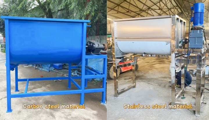 Our factory offers two main material options for the Horizontal Shaft Ribbon Mixer for Cattle Feed: carbon steel and stainless steel. The choice depends on the scale of the farm, the type of feed, and the operating conditions, balancing practicality and cost control. The carbon steel material is thickened and wear-resistant, treated with rust-proof paint. It boasts high hardness and impact resistance, withstanding friction from coarse feeds such as straw and distiller's grains. It also offers lower procurement and maintenance costs, suitable for the basic needs of small to medium-sized cattle farms mixing regular dry feed and roughage.