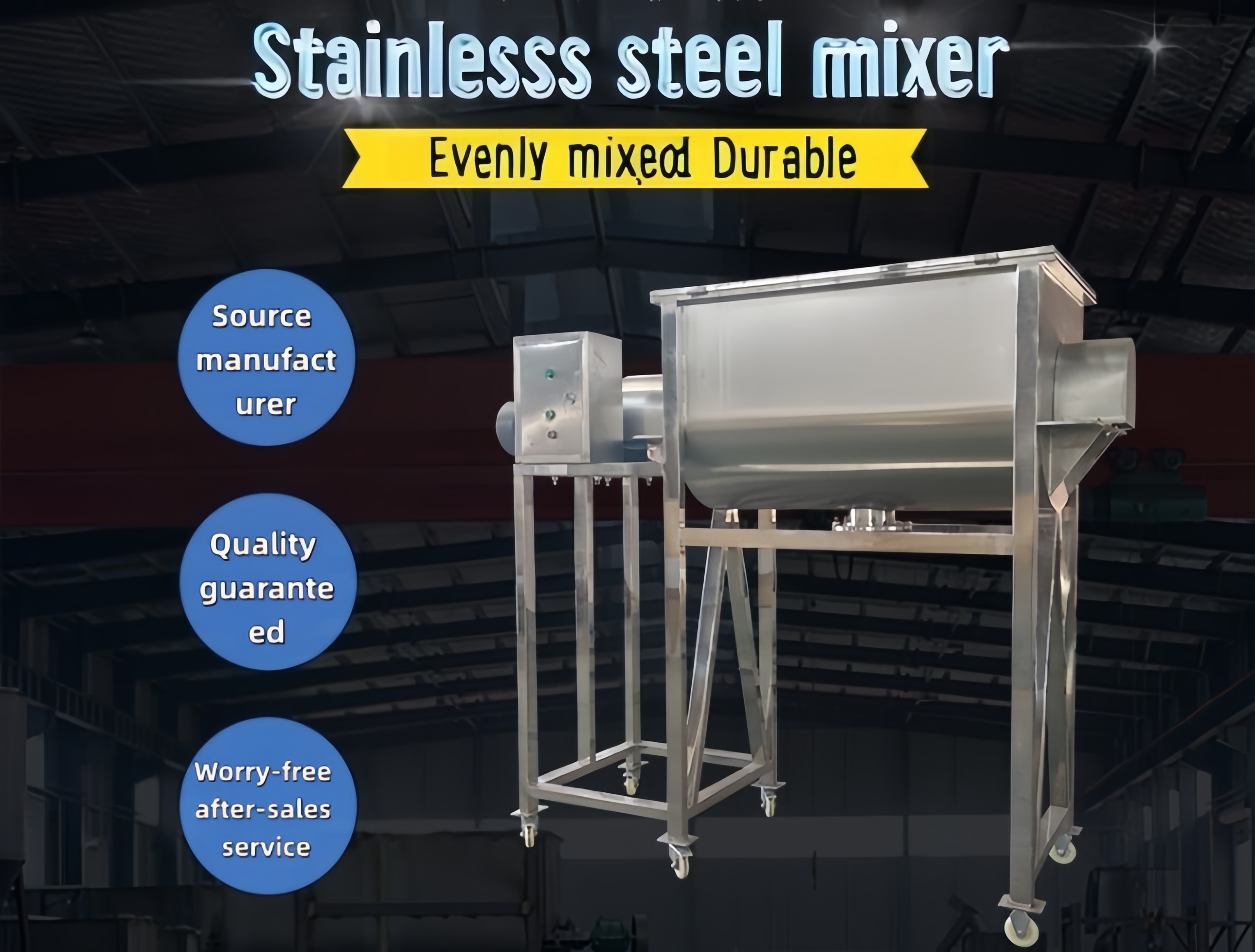 We offer carbon steel, 304 stainless steel, and 316 stainless steel. Carbon steel offers high cost-effectiveness and is suitable for mixing general dry feeds; 304 stainless steel is corrosion-resistant and easy to clean, suitable for conventional feed processing; 316 stainless steel offers even stronger corrosion resistance and is suitable for mixing special raw materials.