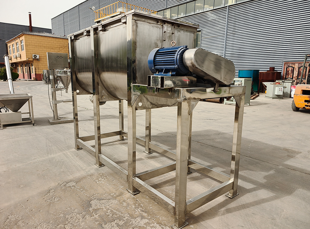 Pretreatment of chemical flavoring raw materials: In the production of synthetic flavorings, various chemical raw materials must be mixed with flavor precursors. The sealed design of the ribbon mixer prevents the escape of volatile flavoring components while accelerating the contact of reactants through multi-directional movement.