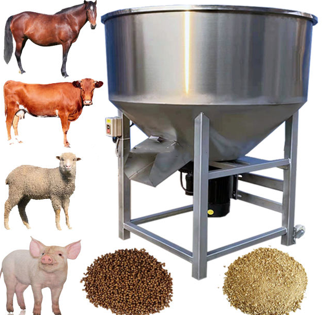 Stainless Steel Animal Feed Mixer is a special equipment used to mix and stir animal feed raw materials of different ingredients to achieve uniformity and consistency of feed ingredients. It is made of stainless steel, which has excellent corrosion resistance and can effectively resist corrosive substances such as moisture, acid and alkali in feed. The stirring device is generally composed of a main shaft, stirring blades and a motor, which can quickly and evenly mix the feed raw materials. The stainless steel animal feed mixer is also equipped with a feeding and discharging device for inputting the feed raw materials into the mixer and discharging the mixed feed.