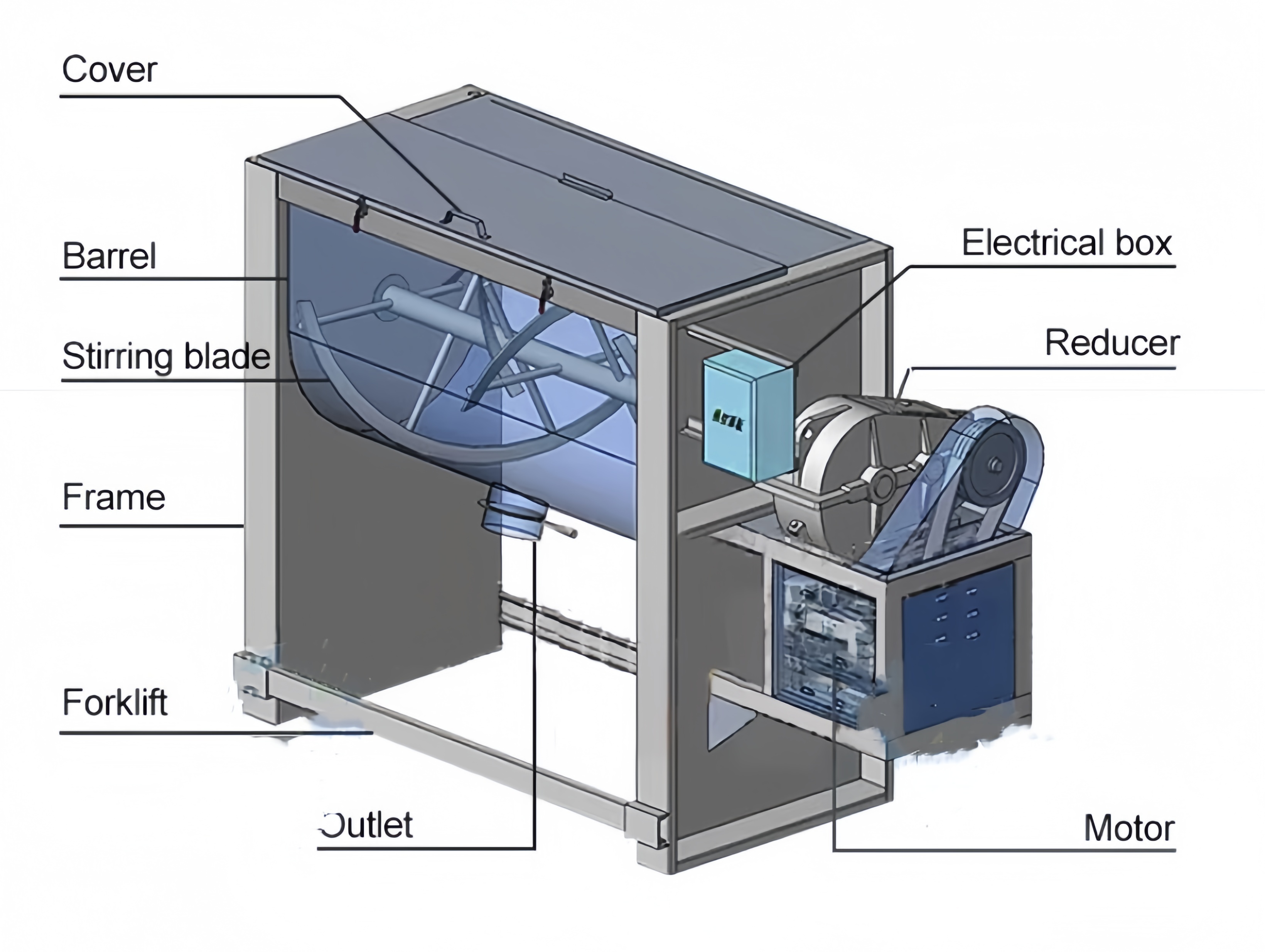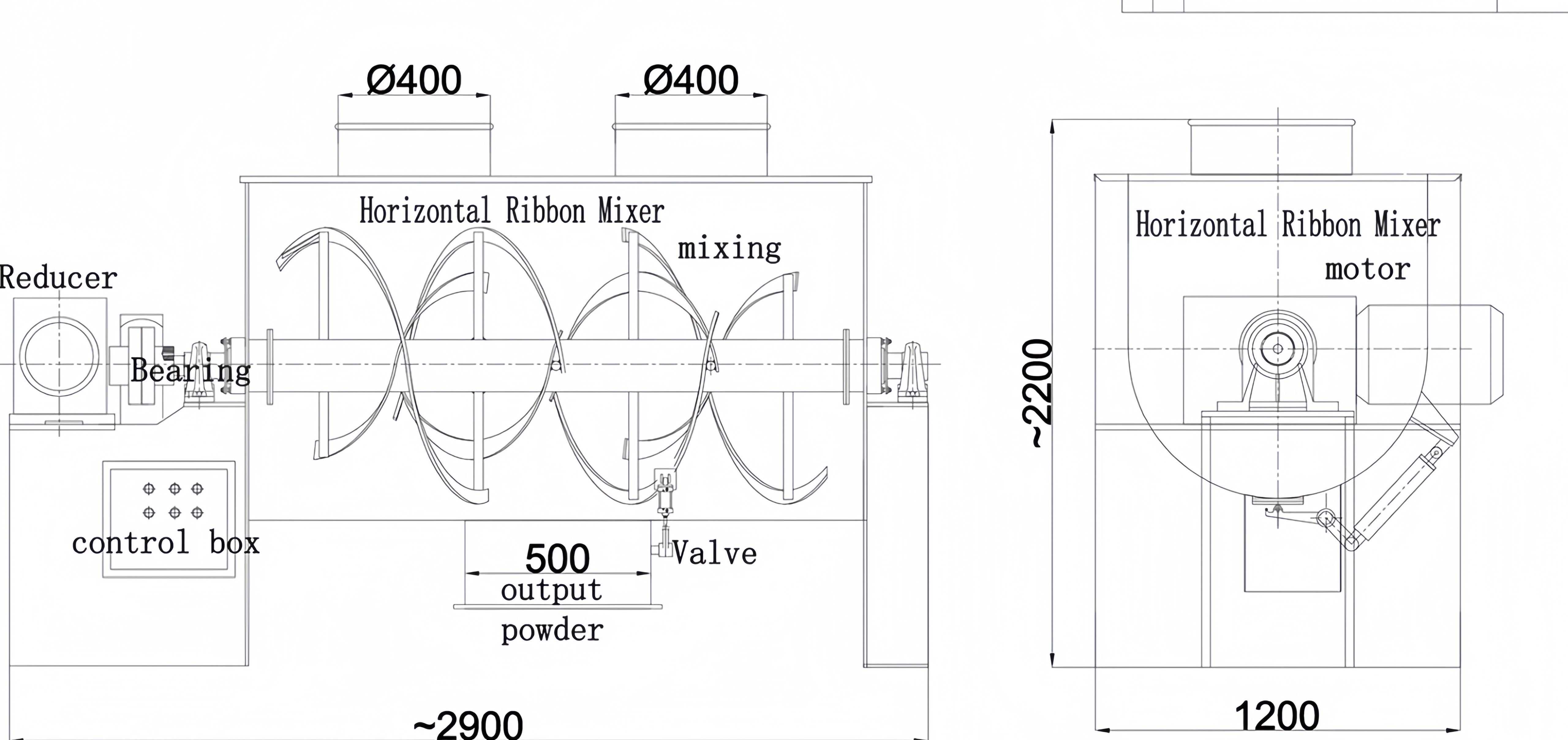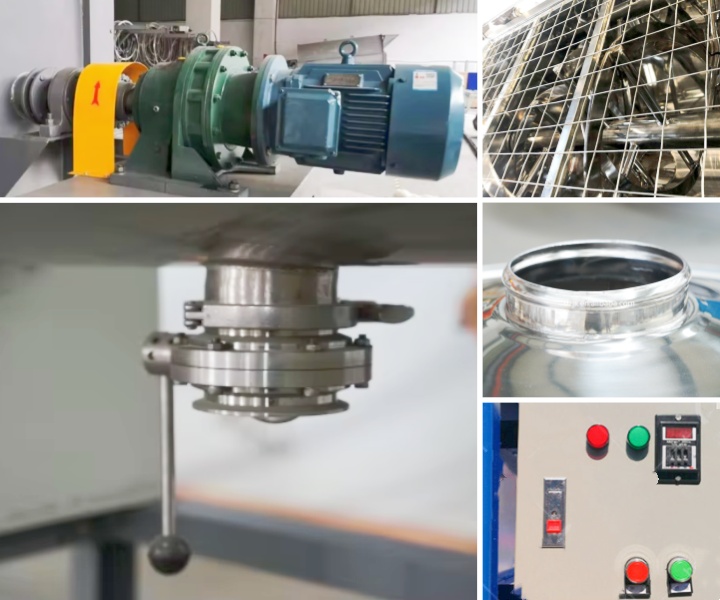 No Dead Zones: The ribbon mixer fits tightly against the cylinder, resulting in extremely low material residue and reducing raw material waste.