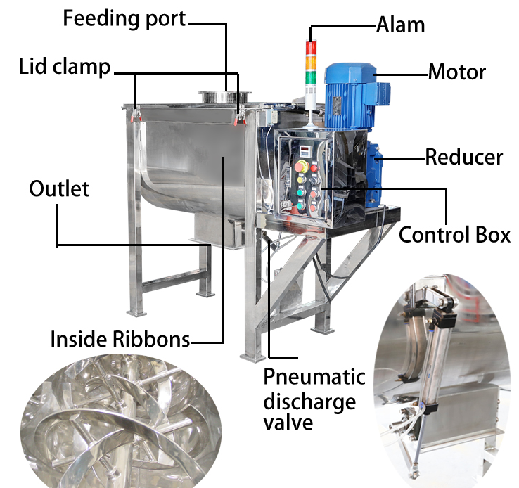 The Vertical Powder Ribbon Mixer for Solids and Powders is designed for efficient mixing of solids and powders. Its core consists of five main components, ensuring precise mixing, easy operation, and adaptability to various scenarios.