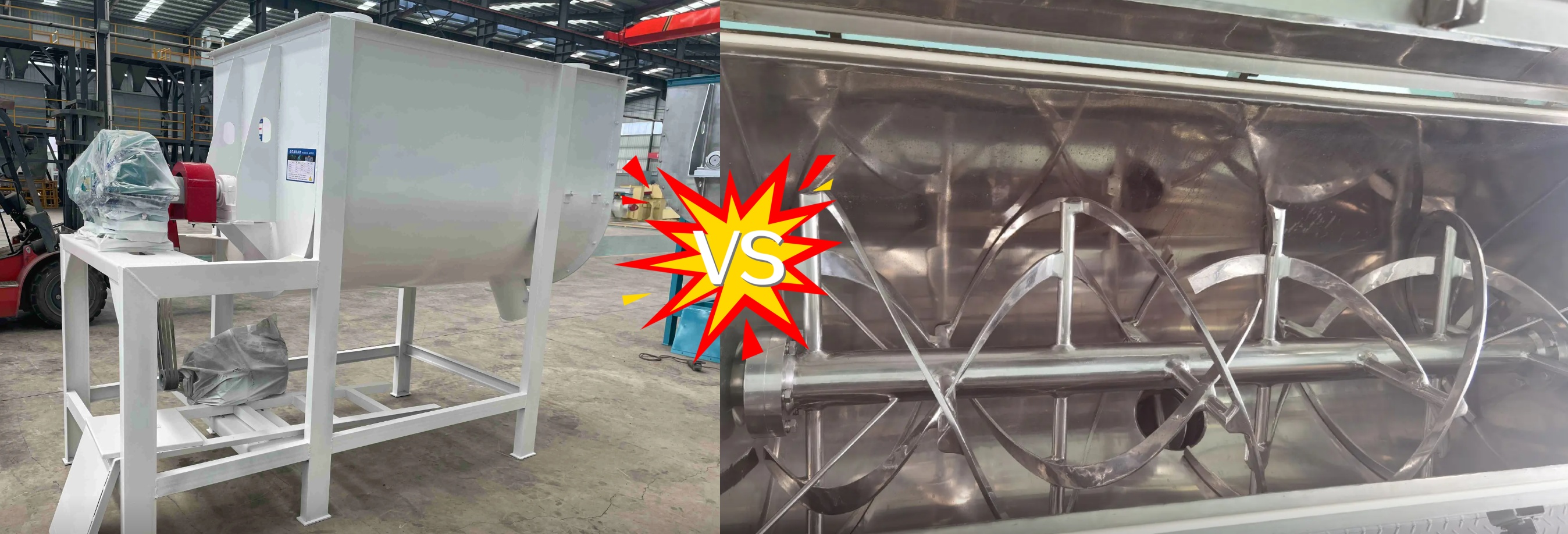 Structural Differences: Belt mixers are mostly horizontal in structure, with a core belt-shaped mixing component. This component rotates, shears, and pushes materials, creating forced convection mixing, resulting in more vigorous material circulation and mixing within the chamber.