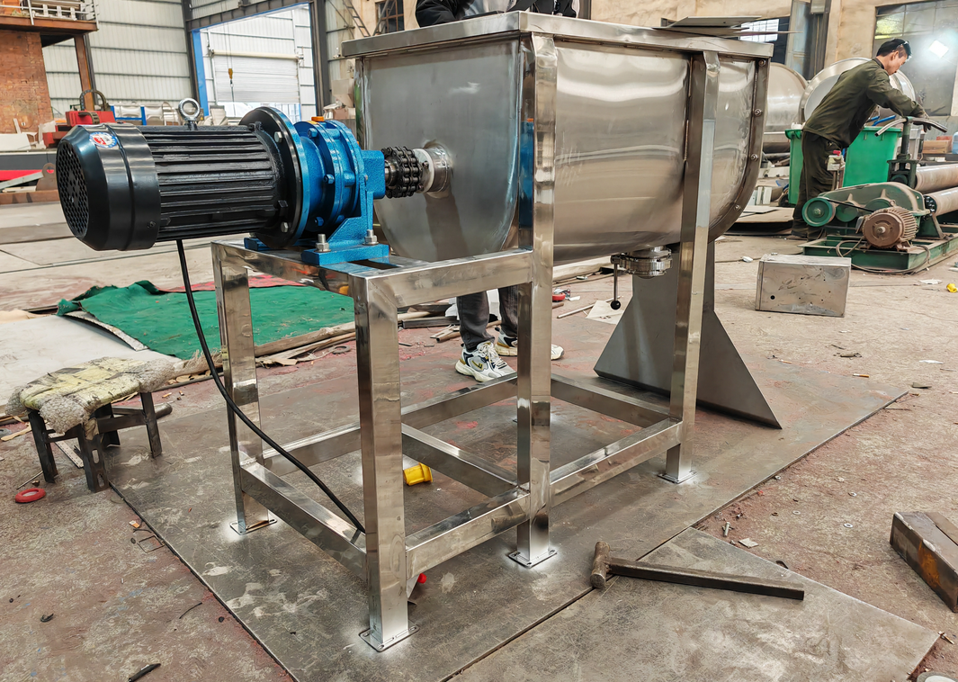 Animal feed ribbon mixer is a ribbon mixer designed for modern feed production. It adopts 304/316L stainless steel and double-ribbon reverse mixing technology, which perfectly adapts to the mixing needs of livestock, poultry, aquatic products, pet feed and premixes. The equipment has an efficient mixing capacity of 5-15 minutes/batch, and can be equipped with liquid spraying, explosion-proof, intelligent PLC control and other modules. Compared with traditional equipment, it saves more than 30% energy, helps feed companies improve quality, reduce losses, and increase annual production capacity by 20%-30%!