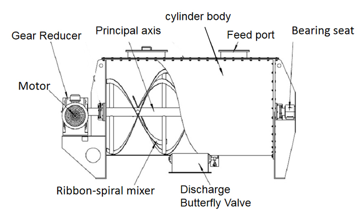 The Cat Litter Ribbon Mixer's structure is designed around the characteristics of cat litter raw materials. Its core consists of five main components, ensuring wear resistance, efficient mixing, and easy operation, suitable for the production needs of bentonite, tofu, and other types of cat litter.