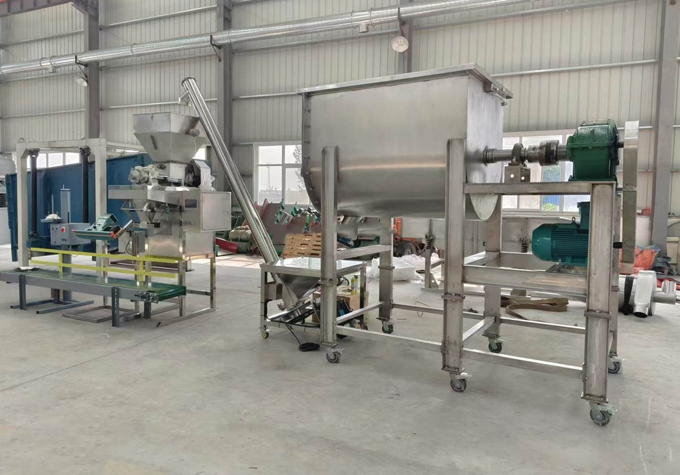 The Cat Litter Ribbon Mixer can be deeply integrated with feeding machines, pellet mills, and packaging machines to build a fully automated cat litter production line. The three work together to achieve full automation from raw material processing to finished product packaging.