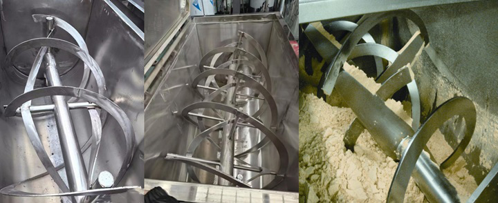 Single-ribbon Industrial Ribbon Mixer: Suitable for scenarios with limited budgets and simple operating conditions. It has a simple structure, primarily pushing materials in one direction, resulting in low manufacturing and maintenance costs.