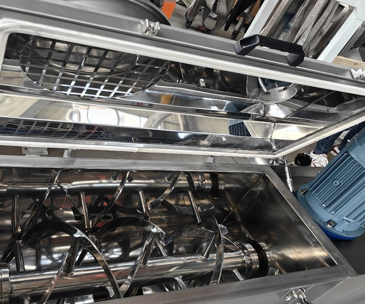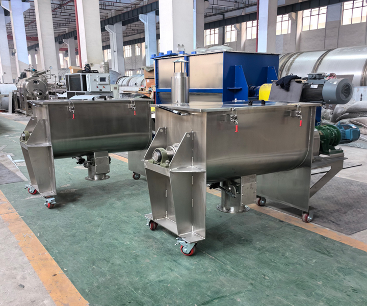 Horizontal Ribbon Mixer: With a horizontal cylinder structure, it offers larger volume and a wider capacity range. Its core technology utilizes the convection circulation of double/triple ribbons to achieve forced mixing of materials, resulting in high uniformity and minimal residue. It can handle powders, granules, and materials containing small amounts of liquid.